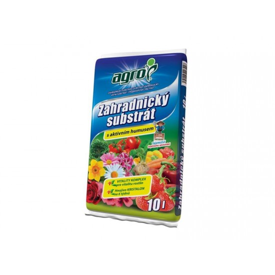 AGRO Záhradnícky substrát s aktívnym humusom je vynikajúci pre výsadbu a pestovanie kvetín, zeleniny, okrasných kríkov, ovocných stromov i mobilné zelene, a to v skleníku, na záhone, záhrade a v mobilných kontajneroch. Substrát obsahuje hnojivo na 6 týždňov a komplex živín pre vitalitu rastlín. AGRO Záhradnícky substrát s upraveným pH je zmesou rašeliny, kvalitného vyzretého humusu - čo je najúrodnejšia druh pôdy. VITALITY Komplex je unikátny súbor enzýmov a stimulačných látok zo zažívacieho traktu dážďoviek, zrýchľujúci transport živín z pôdy do rastlín a zlepšujúce ich využitie. Tieto látky sú nápomocné pri zväčšení koreňovej plochy a následne aj nadzemné časti rastliny. Spolu s humínovými a fulvinovými kyselinami obmedzujú únavu a vyčerpanie pôdy.